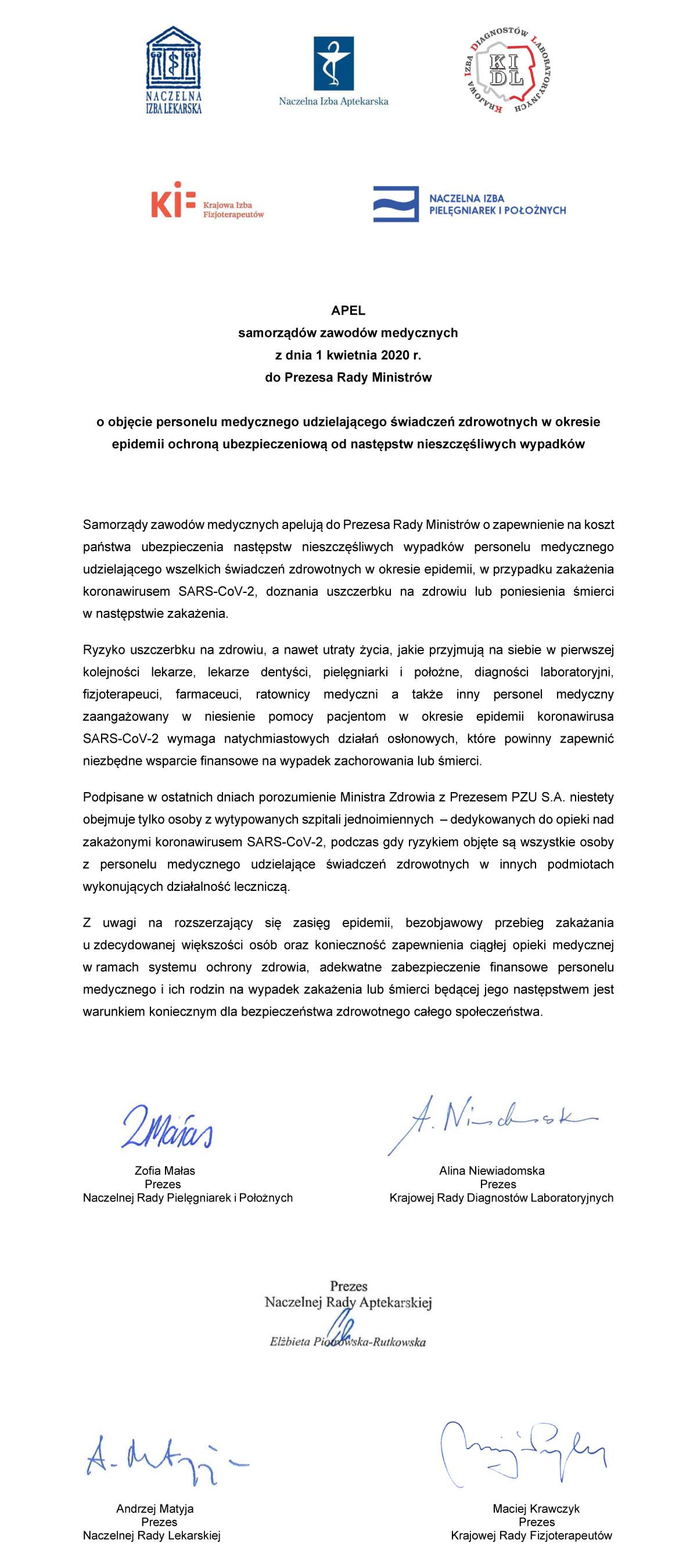 Apel samorządów zawodów medycznych (pdf)