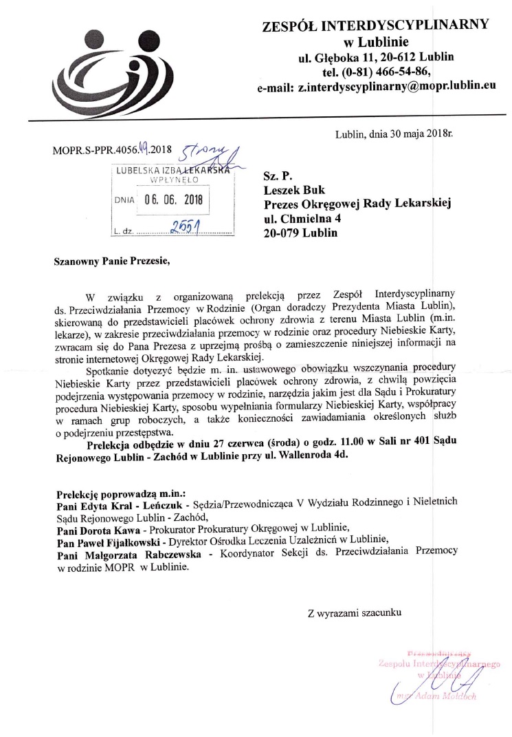 Prelekcja ds.Przeciwdziałania Przemocy w Rodzinie - 27 czerwca 2018