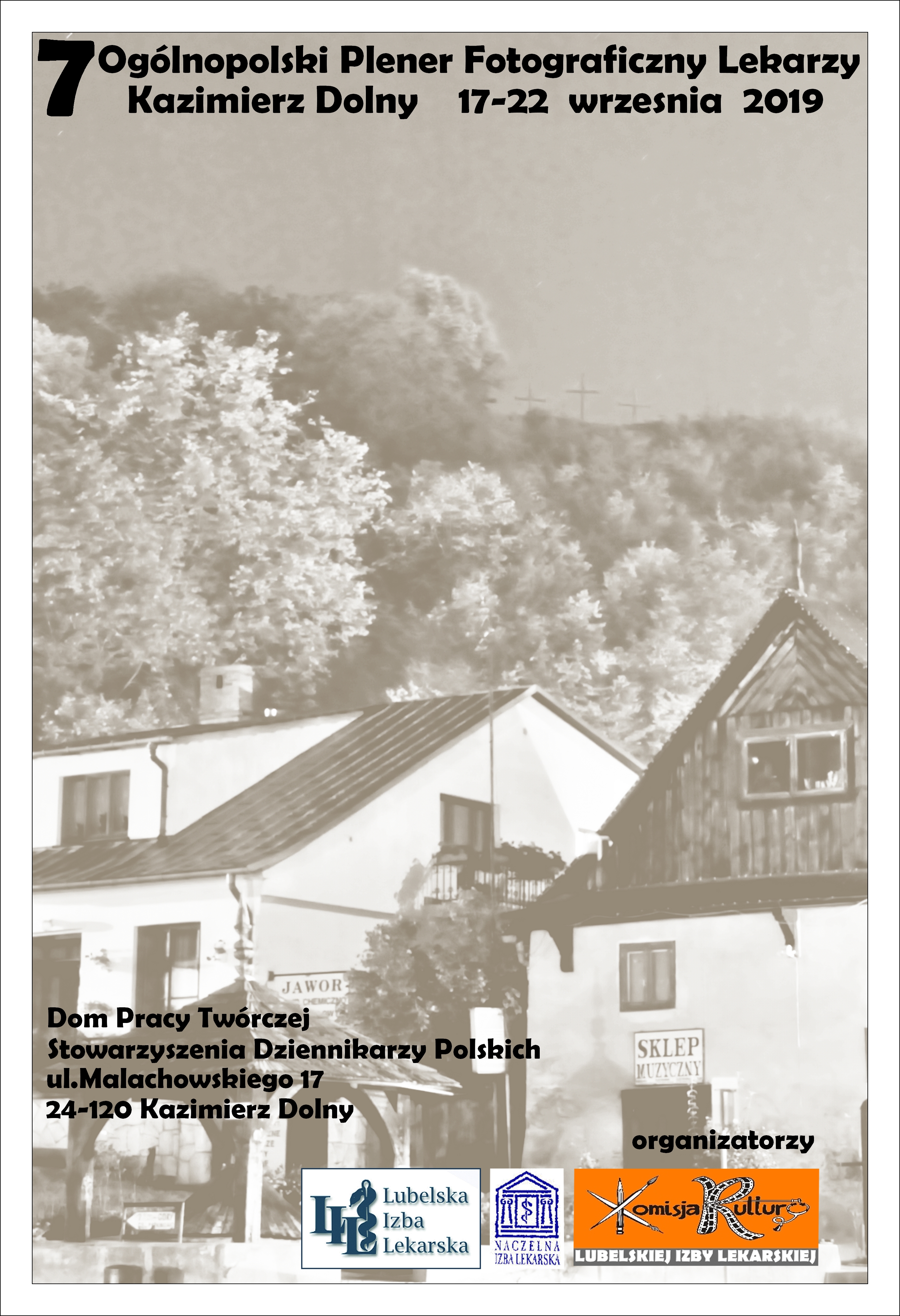 Komisja Kultury Okręgowej Rady Lekarskiej w Lublinie zaprasza Koleżanki i Kolegów pasjonatów fotografii do udziału w VII Ogólnopolskim Plenerze Fotograficznym Lekarzy w dniach 14-22 września 2019 w Kazimierzu Dolnym nad Wisłą. organizowanym przy współudziale Naczelnej Rady Lekarskiej.