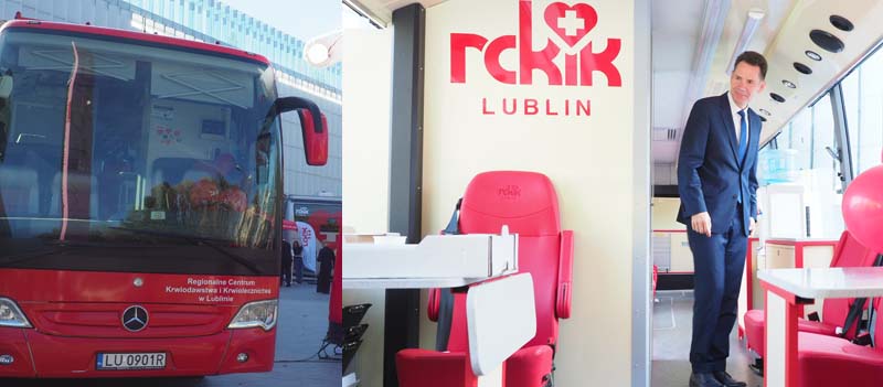 RCKiK wzbogaciło się o kolejny krwiobus – nowoczesny, wyposażony m.in. w agregat prądotwórczy - który pozwala na pracę bez uruchomienia silnika, ma toaletę, nowoczesne fotele i klimatyzację. To poprawi zarówno sam komfort przy oddawaniu krwi, jak i pracę personelu - mówi Elżbieta Puacz, dyrektor Regionalnego Centrum Krwiodawstwa i Krwiolecznictwa w Lublinie.