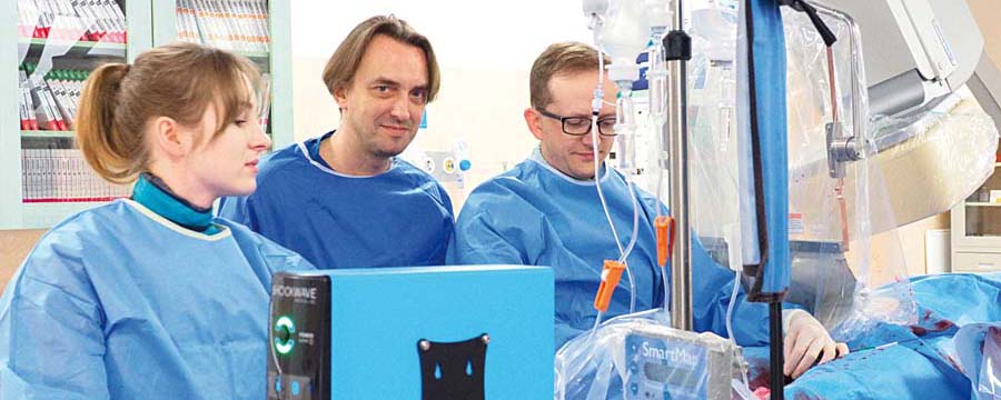– Jesienią zaczęliśmy wykonywać zabiegi litotrypsji zmian w naczyniach wieńcowych. Byliśmy pierwszym oddziałem w Lublinie, który podjął się tego zadania. To nowa skuteczna metoda leczenia trudnych, twardych, zwapniałych zmian niepoddających się standardowym metodom leczenia interwencyjnego. Ponieważ mamy coraz starszą populację, rośnie też potrzeba takiej formy pomocy. To ważne, bo z jednej strony dzięki skutecznemu leczeniu wzrasta przeżywalność pacjentów, a z drugiej obserwujemy u tych pacjentów coraz bardziej zaawansowany i wymagający coraz bardziej skomplikowanych zabiegów charakter zmian miażdżycowych. W przypadku takich właśnie zwężeń często zwykła angioplastyka nie wystarcza i musimy używać takich metod jak rotablacja, którą z powodzeniem stosujemy już od ponad 10 lat, czy właśnie litotrypsja. (...)