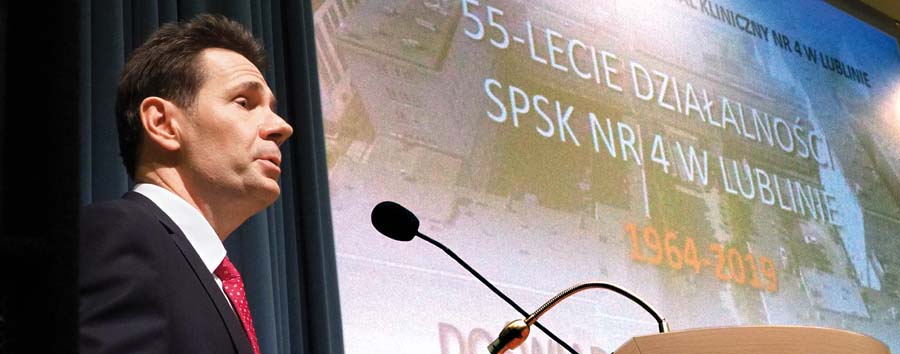 – Na wybitym z okazji jubileuszu medalu widnieje napis: „Doświadczenie i innowacyjność”. Uważam, że te określenia oddają istotę funkcjonowania naszego szpitala. Do mocnych atutów należy na pewno to, że jako jeden z pierwszych szpitali w Polsce rozpoczęliśmy realizację pilotażowego programu zastosowania trombektomii mechanicznej w leczeniu udaru niedokrwiennego mózgu, która pozwala pacjentowi w krótkim czasie po zabiegu wrócić do w miarę normalnego funkcjonowania. Jesteśmy jedynym szpitalem po tej stronie Wisły, wykonującym małoinwazyjne operacje zastawki trójdzielnej metodą MitraClip. (...)